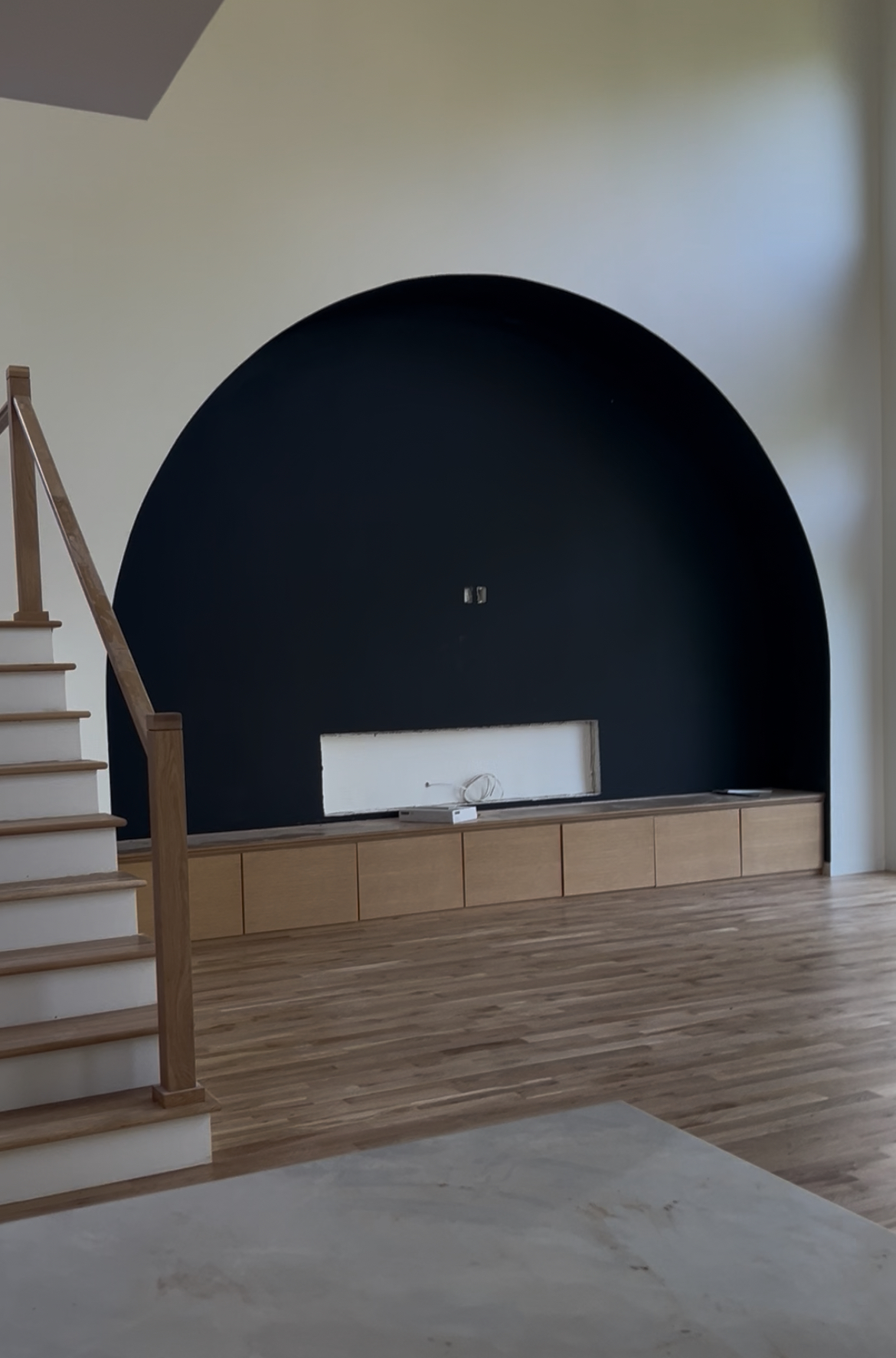 Our designers at Edward Franklin have been the creative force behind turning our vision into reality. Initially, I envisioned double arches on either side of the TV in the living room, but with a towering 20-foot wall, the proportions just didn’t feel right. Their solution? A single, grand arch and WOW, it might be the most epic design choice yet. It adds just the right amount of drama and instantly commands attention, making it a true showstopper. I can already see myself sitting on the couch, TV off, just admiring this masterpiece when we move in! Highly encourage you to check out their instagram too.